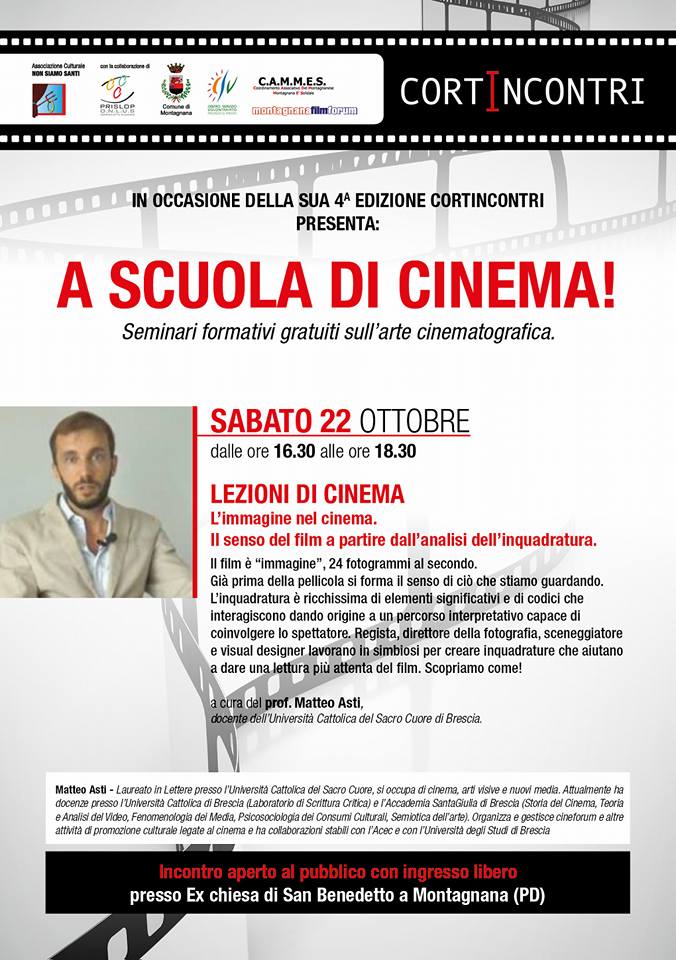 Sabato 22/10/2016 nel pomeriggio dalle ore 16.30 Matteo Asti presenta lezioni di Cinema - gratuite e aperte al pubblico -